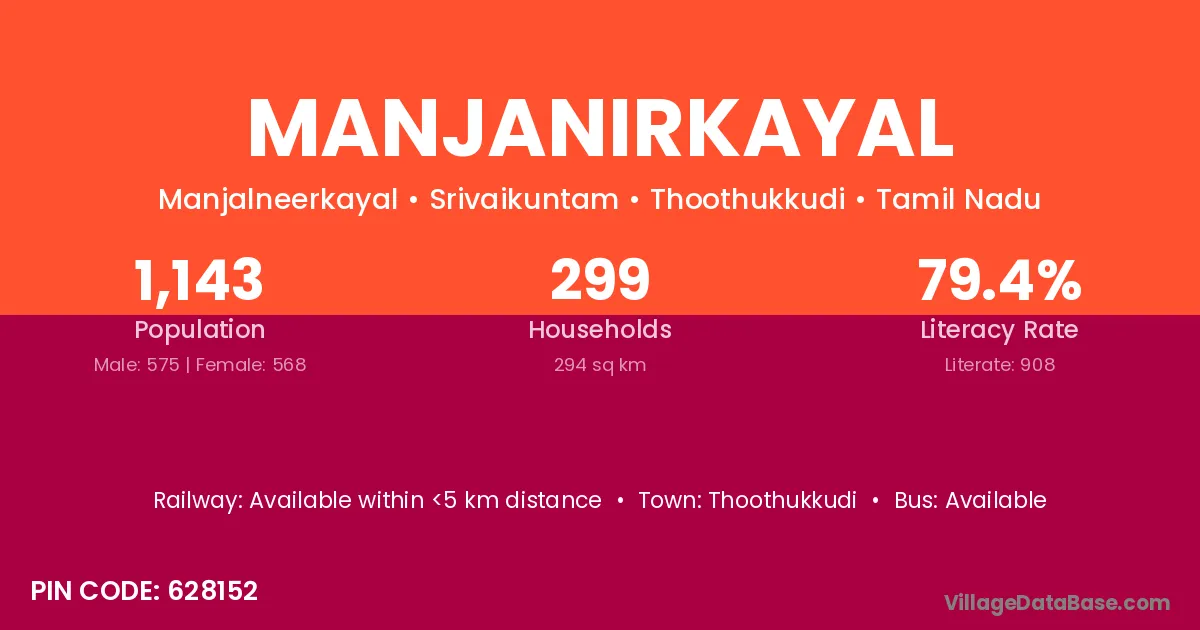 Thoothukkudi is the nearest town to Manjanirkayal village for major economic activities