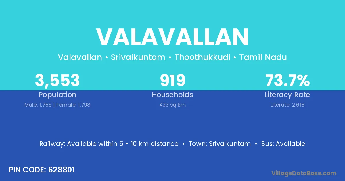 Srivaikuntam is the nearest town to Valavallan village for major economic activities