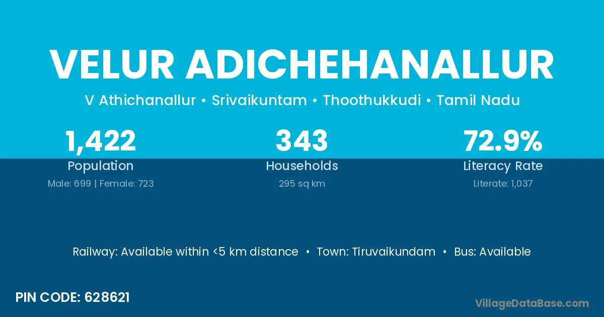 Tiruvaikundam is the nearest town to Velur Adichehanallur village for major economic activities