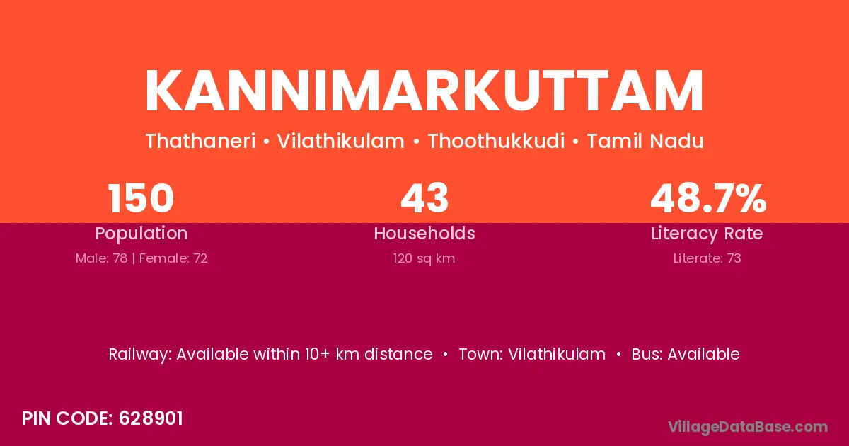 Kannimarkuttam village has a total population of 150 people, of which 78 are males and 72 are females.