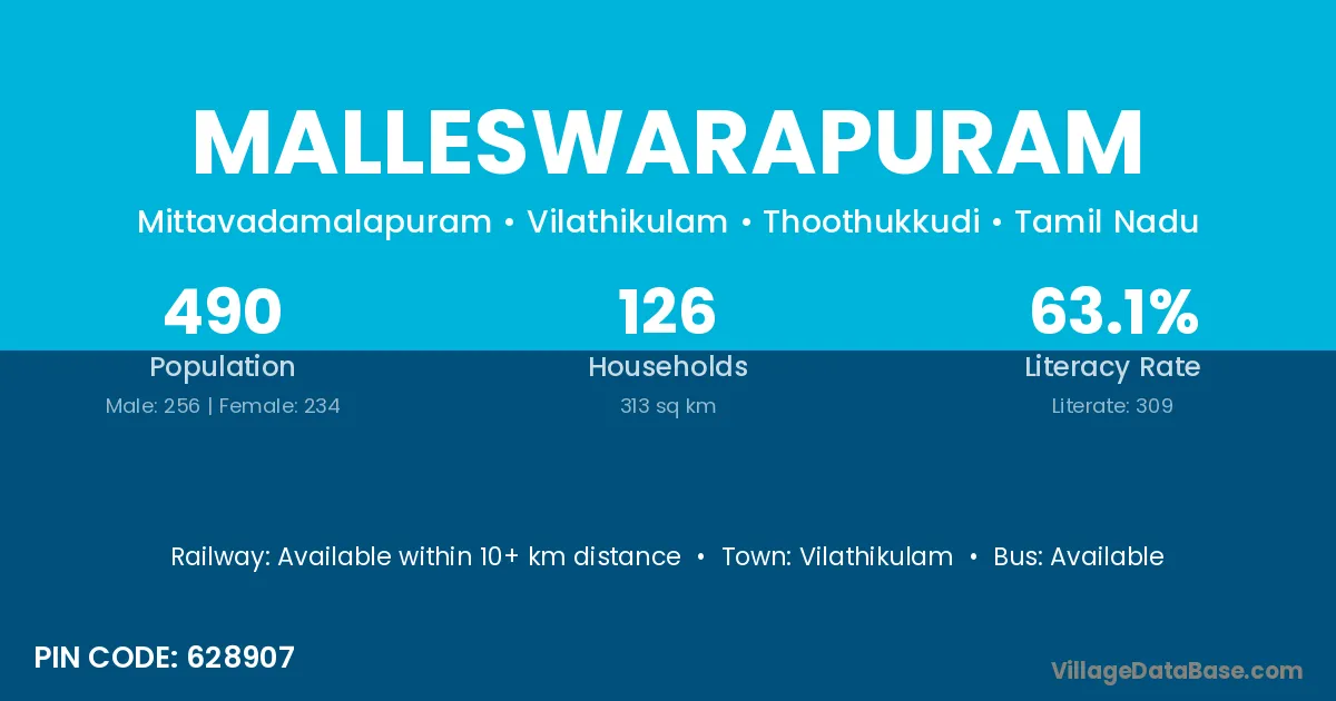 Vilathikulam is the nearest town to Malleswarapuram village for major economic activities