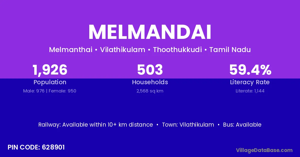 Vilathikulam is the nearest town to Melmandai village for major economic activities