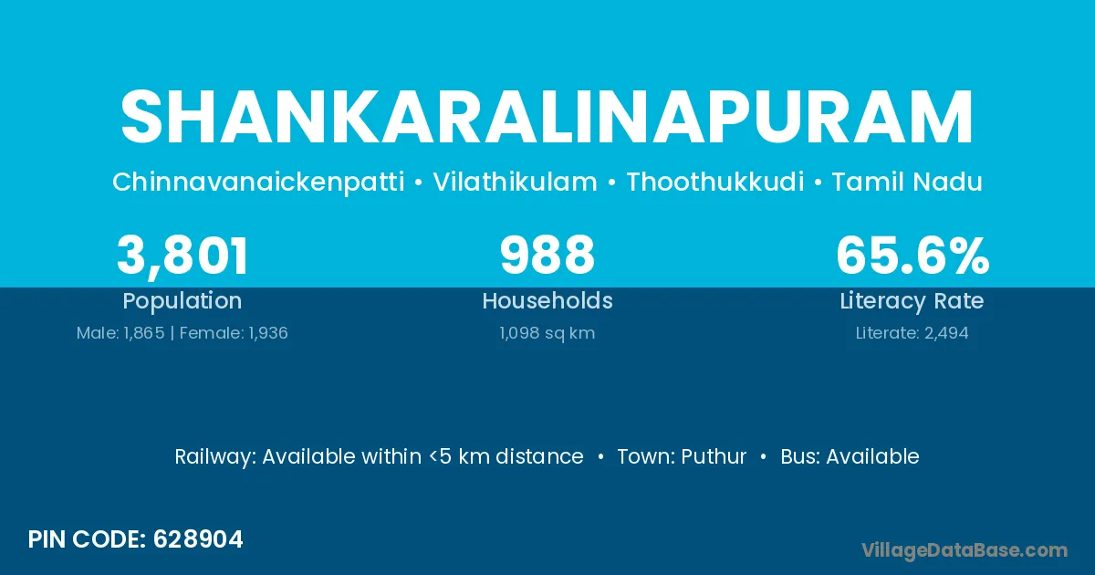 Shankaralinapuram village has a total population of 3,801 people, of which 1,865 are males and 1,936 are females.
