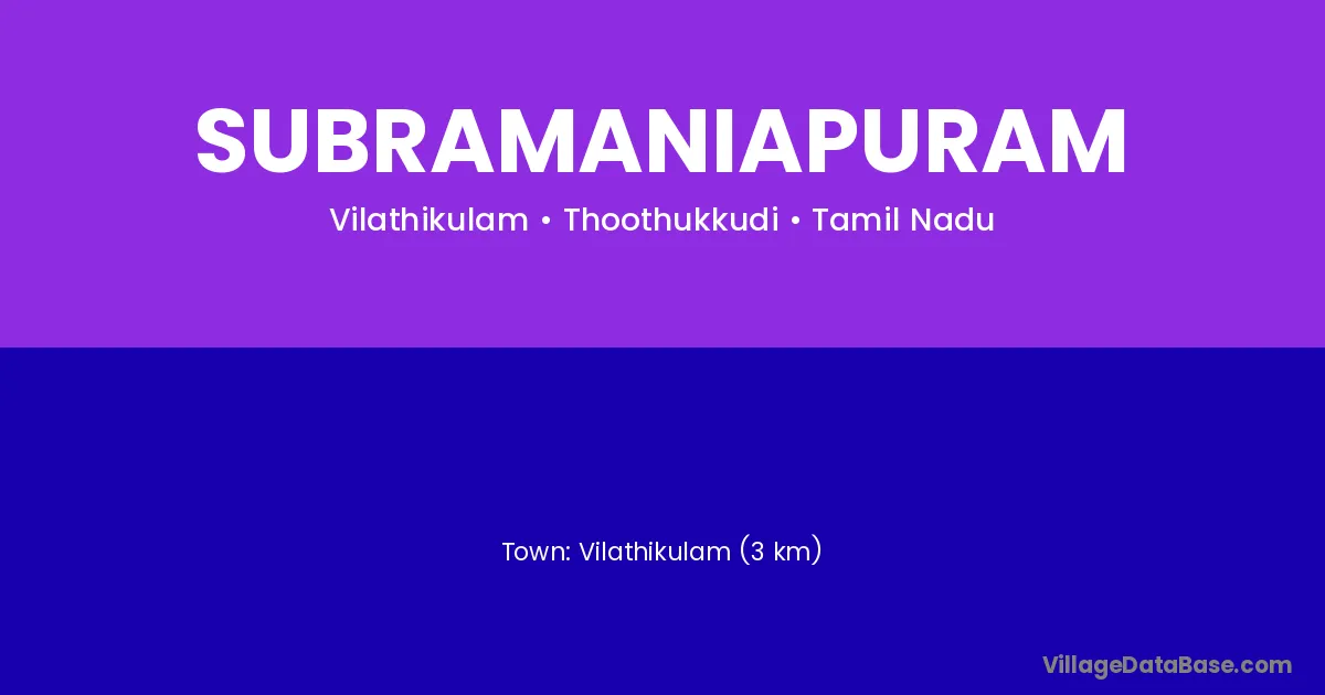 Vilathikulam (3 km) is the nearest town to Subramaniapuram village for major economic activities and is located approximately 3 km away.