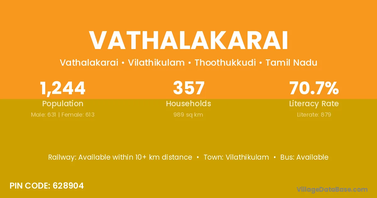 Vathalakarai village has a total population of 1,244 people, of which 631 are males and 613 are females.