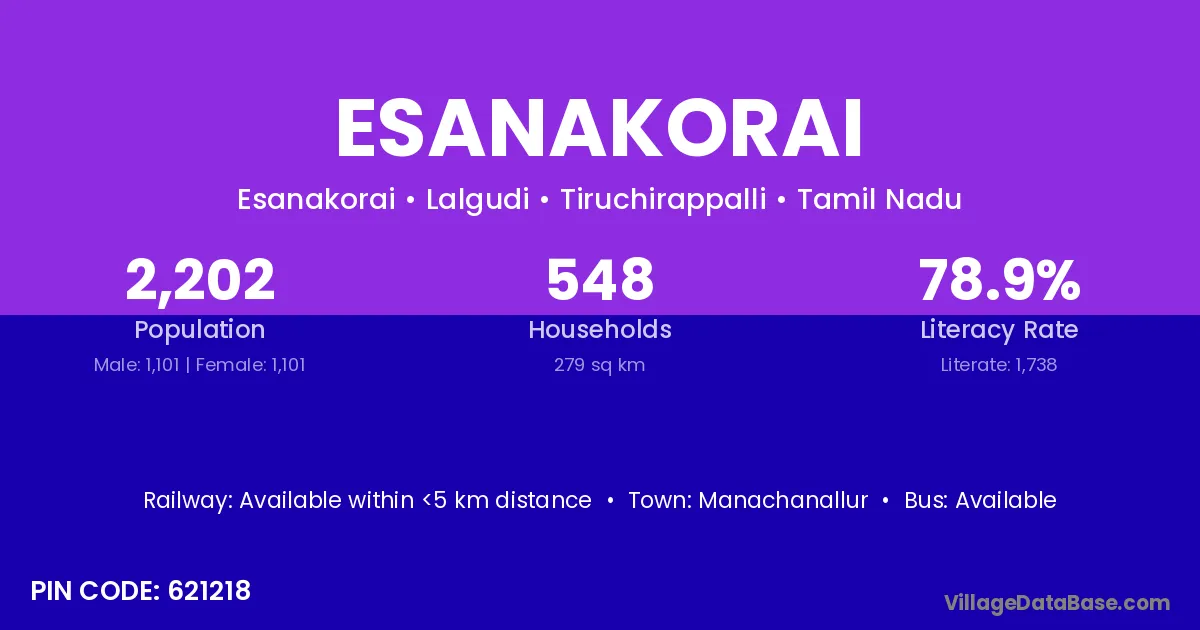 According to Census 2011 information, the village code of Esanakorai village is 621218.