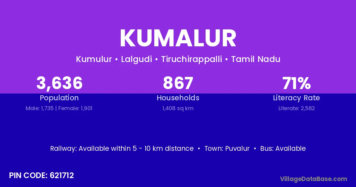 Puvalur is the nearest town to Kumalur village for major economic activities