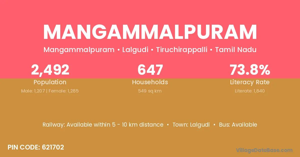 Lalgudi is the nearest town to Mangammalpuram village for major economic activities