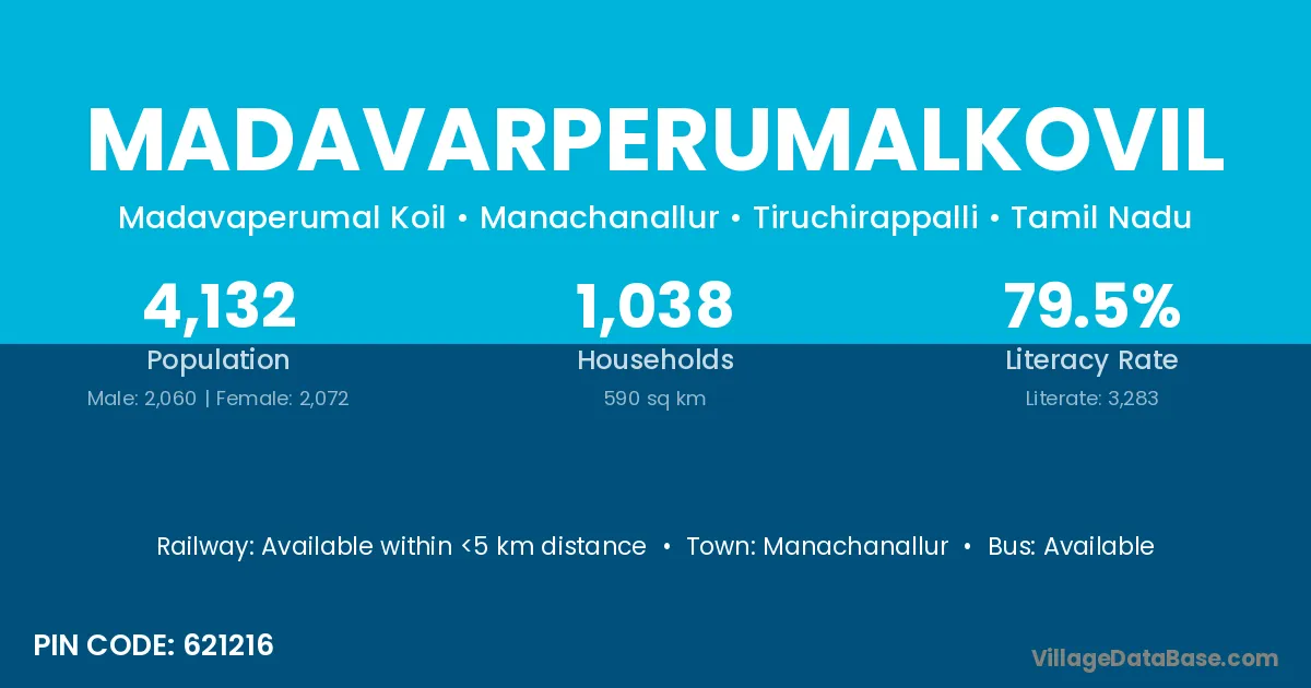 Manachanallur is the nearest town to Madavarperumalkovil village for major economic activities