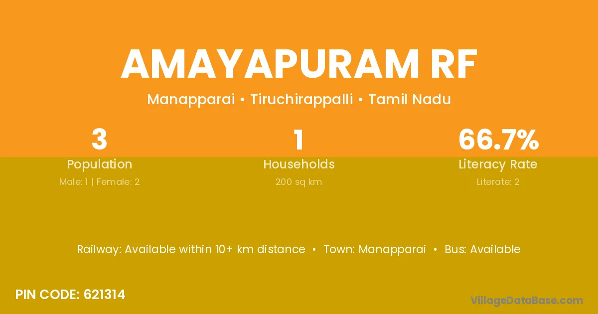 Amayapuram Rf village has a total population of 3 people, of which 1 are males and 2 are females.