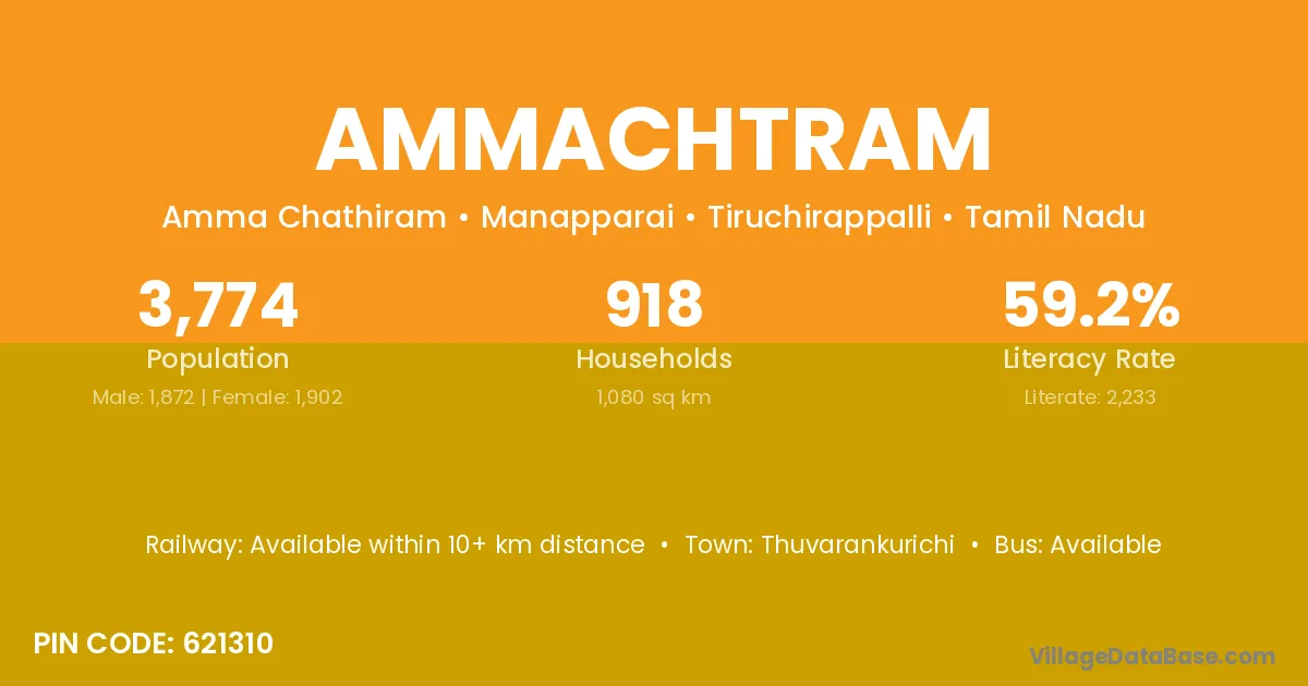 According to Census 2011 information, the village code of Ammachtram village is 621310.