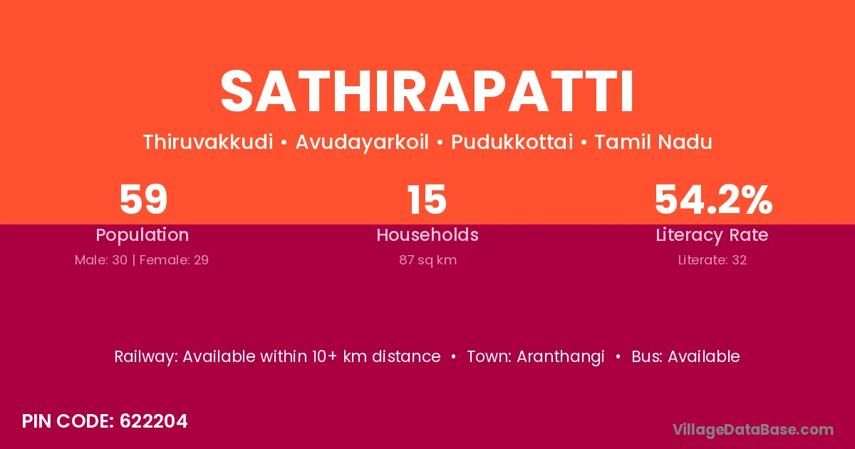 According to Census 2011 information, the village code of Sathirapatti village is 621306.