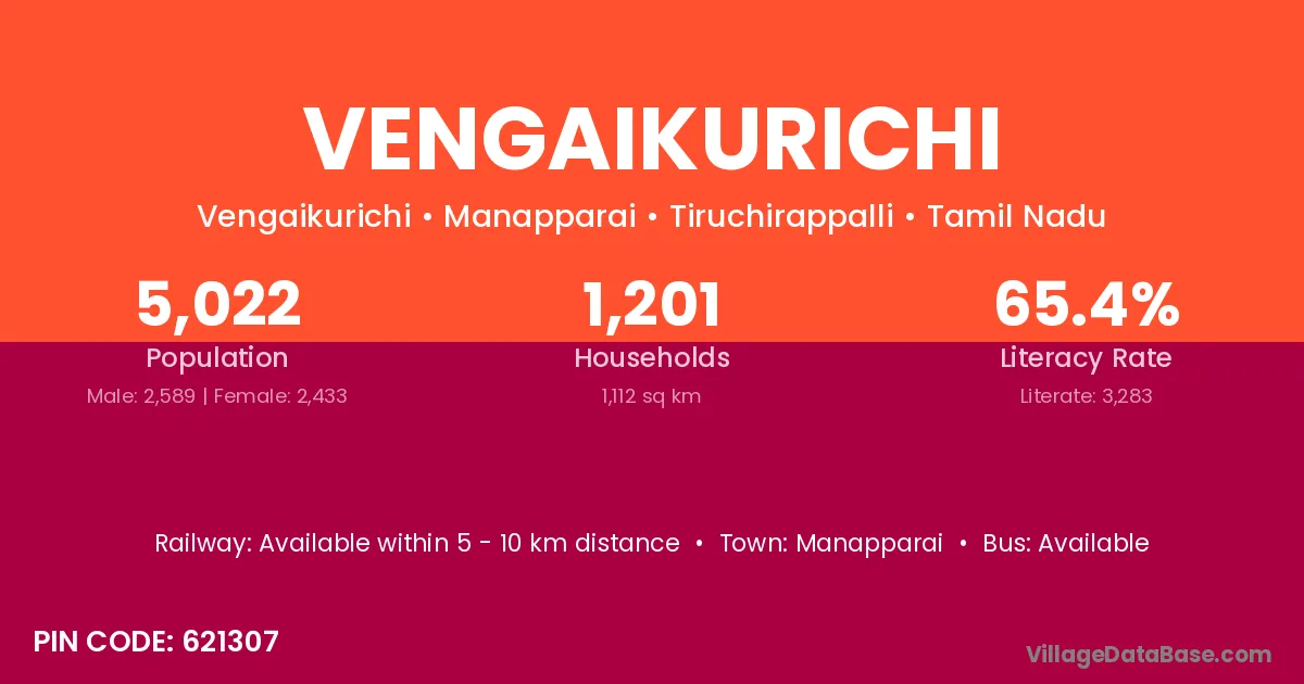 Vengaikurichi village has a total population of 5,022 people, of which 2,589 are males and 2,433 are females.