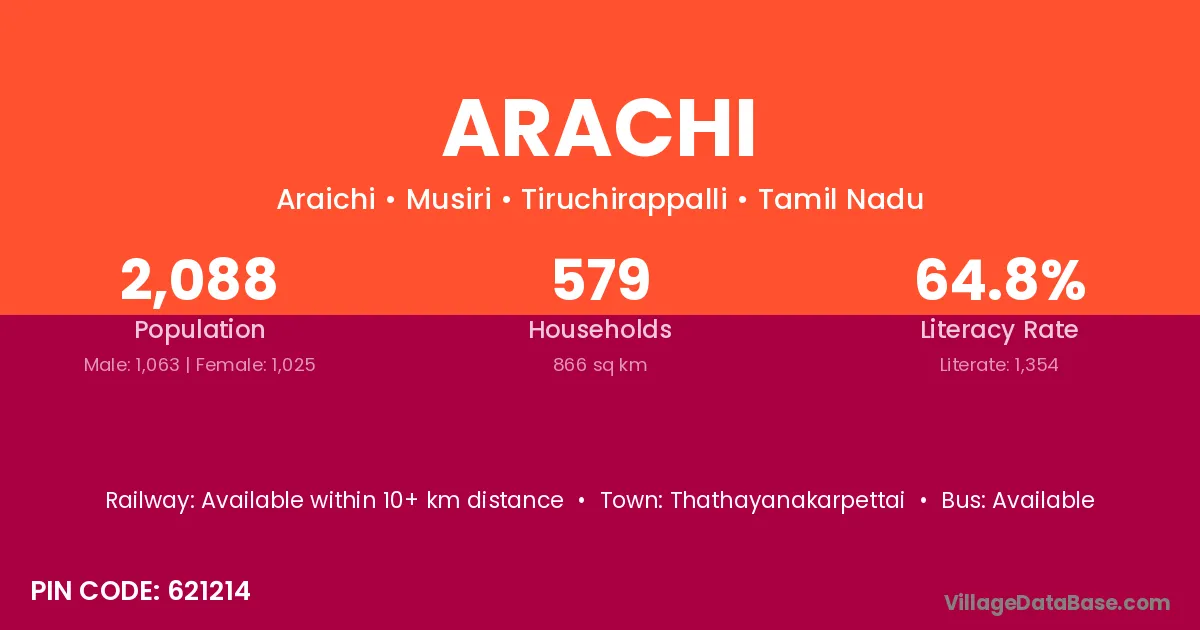 According to Census 2011 information, the village code of Arachi village is 621214.