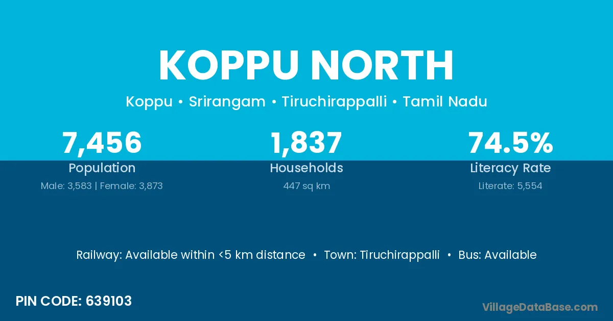 Tiruchirappalli is the nearest town to Koppu North village for major economic activities