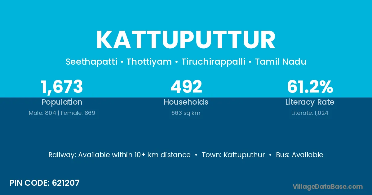 According to Census 2011 information, the village code of Kattuputtur village is 621207.