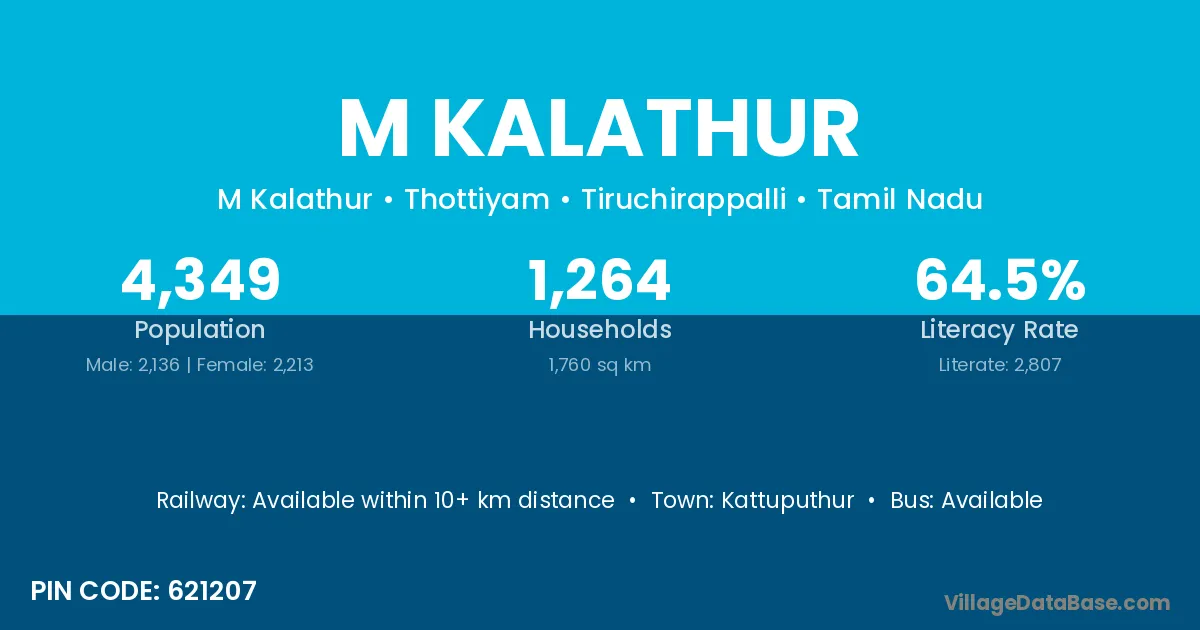 According to Census 2011 information, the village code of M Kalathur village is 621207.