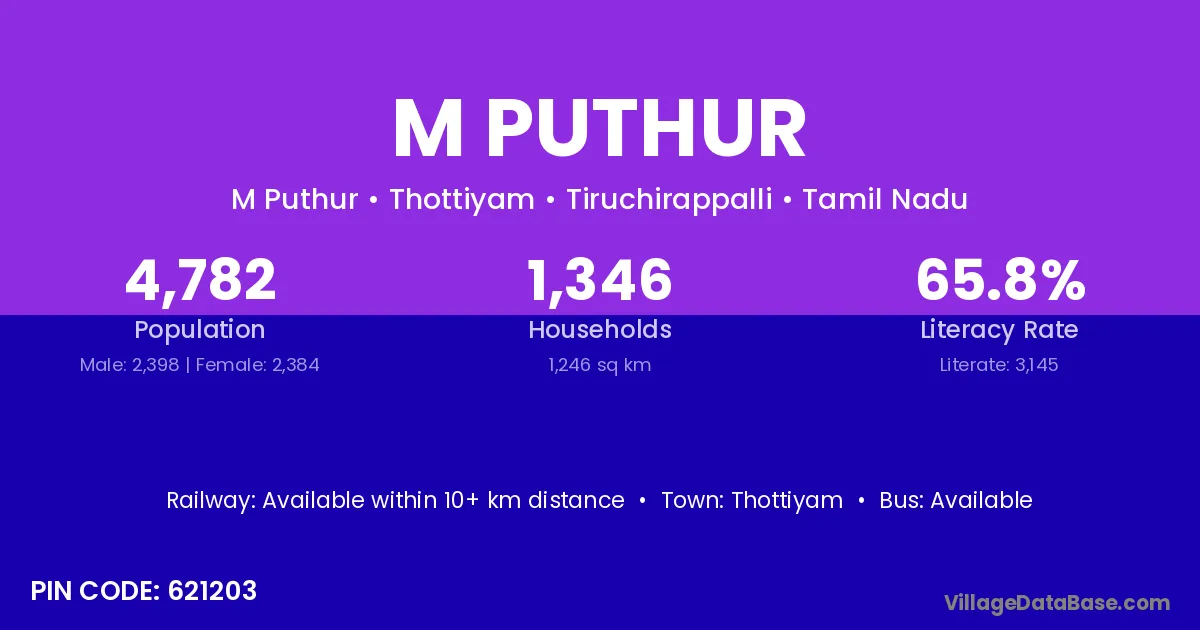 According to Census 2011 information, the village code of M Puthur village is 621203.