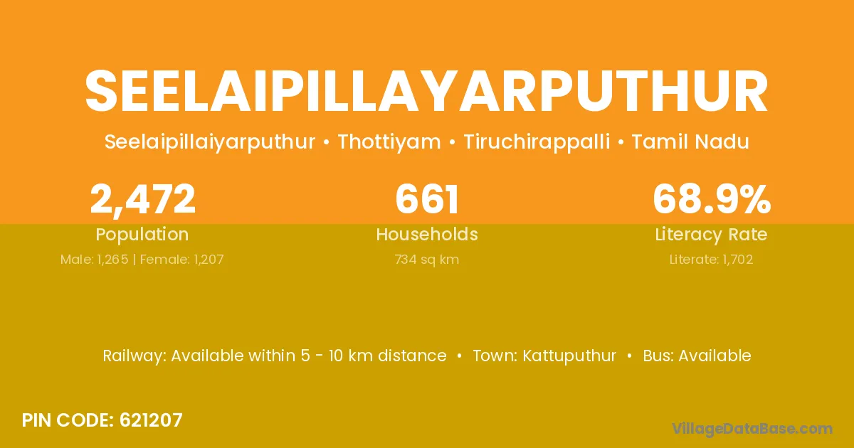 Kattuputhur is the nearest town to Seelaipillayarputhur village for major economic activities
