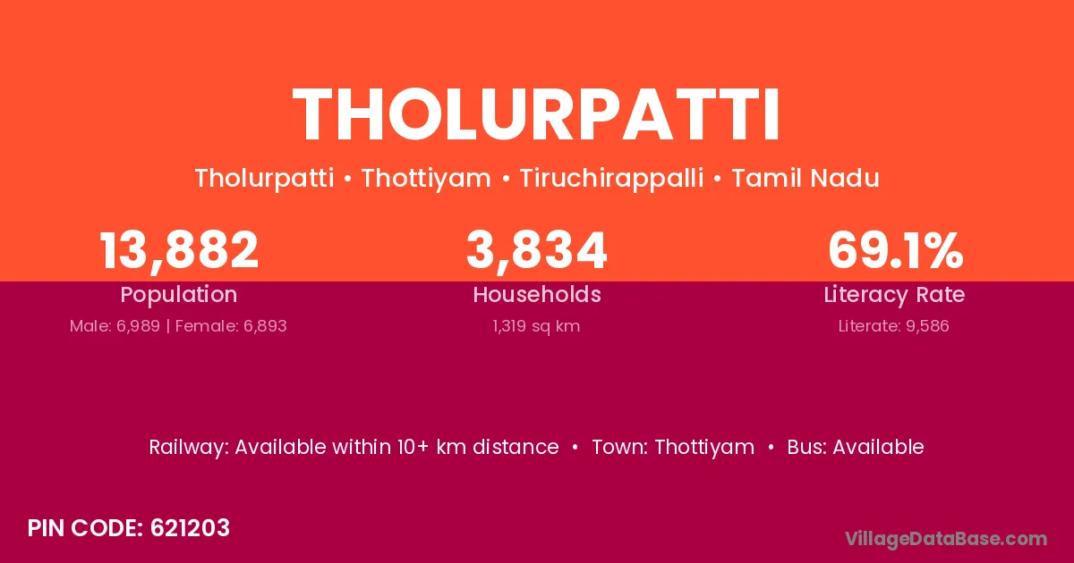 According to Census 2011 information, the village code of Tholurpatti village is 621203.
