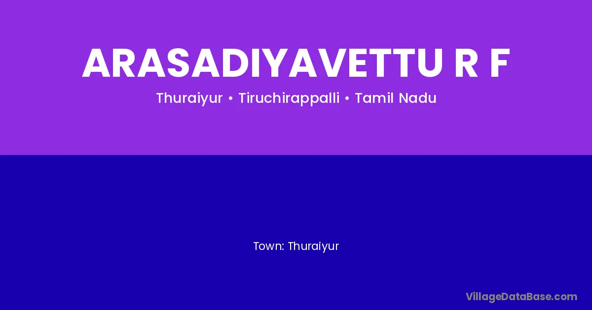 Thuraiyur is the nearest town to Arasadiyavettu R F village for major economic activities