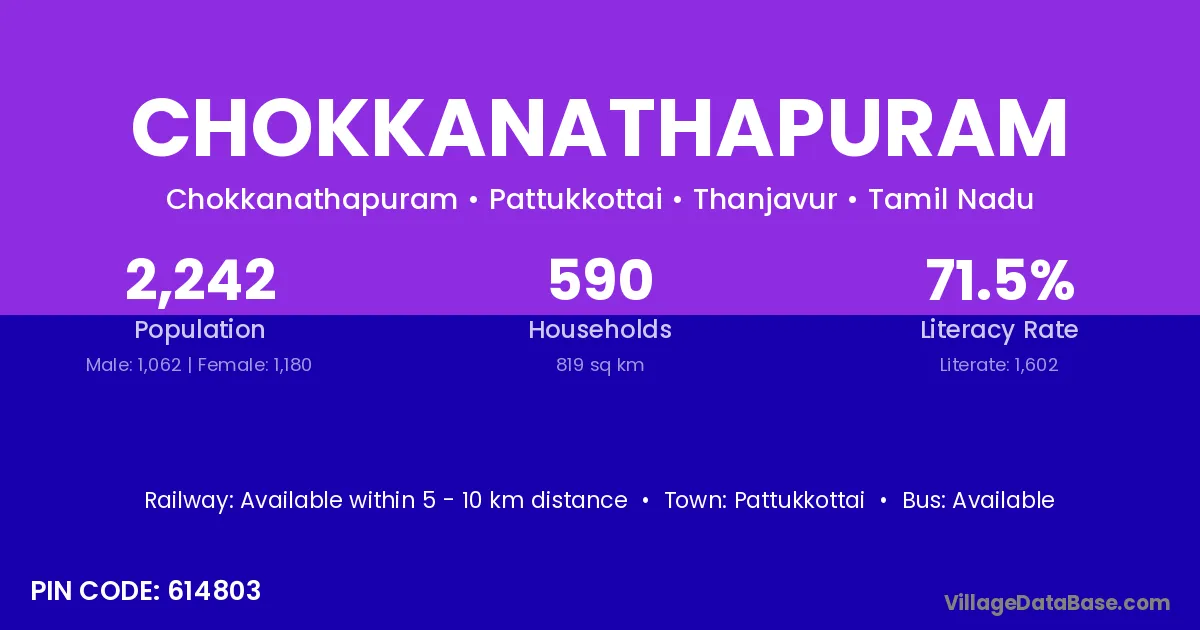 According to Census 2011 information, the village code of Chokkanathapuram village is 621206.