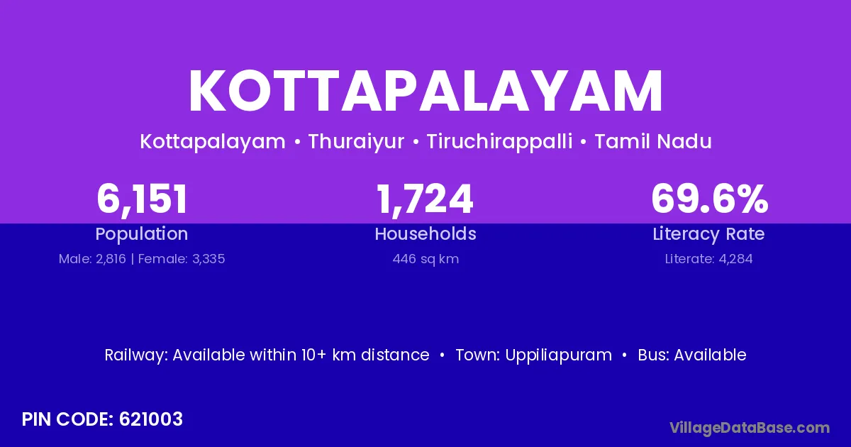 According to Census 2011 information, the village code of Kottapalayam village is 621003.