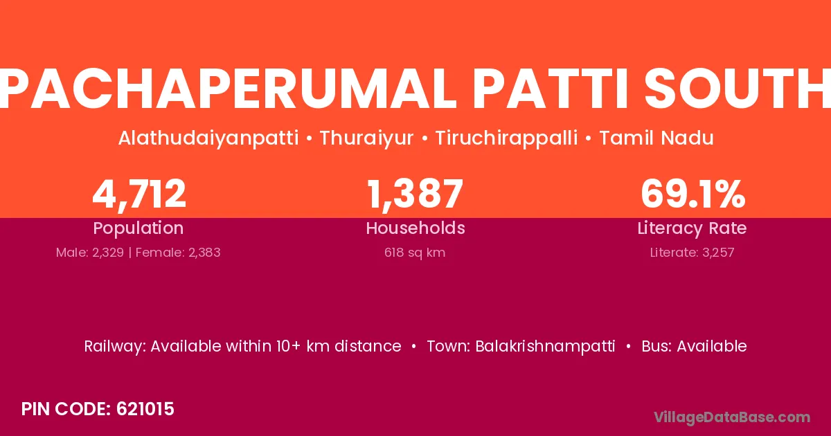 According to Census 2011 information, the village code of Pachaperumal Patti South village is 621015.