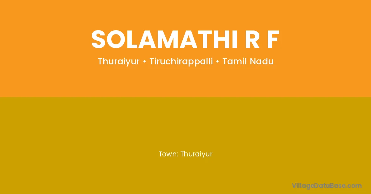 Solamathi R F village is located in the Thuraiyur Taluka of the Tiruchirappalli district in Tamil Nadu .