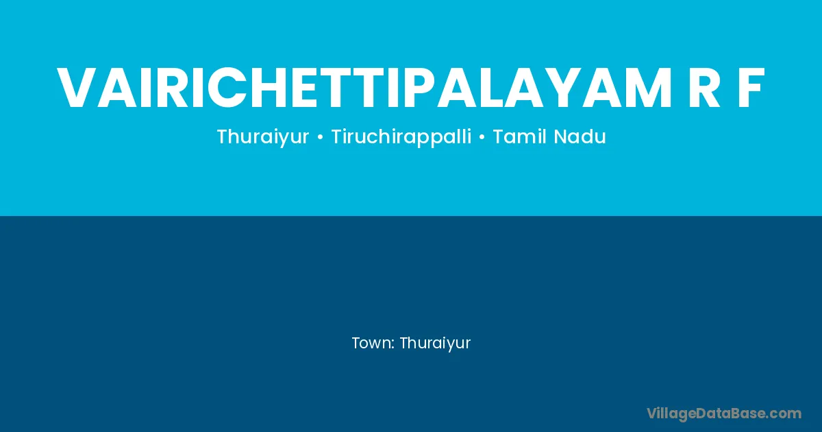 Vairichettipalayam R F village is located in the Thuraiyur Taluka of the Tiruchirappalli district in Tamil Nadu .