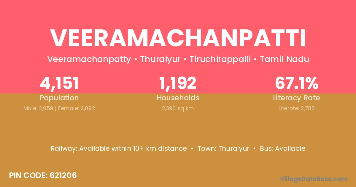 According to Census 2011 information, the village code of Veeramachanpatti village is 621206.