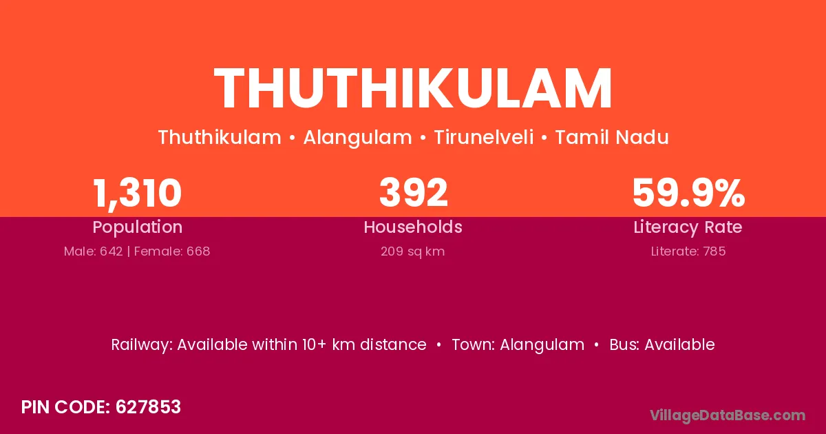 Thuthikulam village has a total population of 1,310 people, of which 642 are males and 668 are females.
