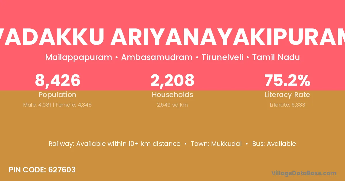 There are approximately 2,208 households in Vadakku Ariyanayakipuram village.