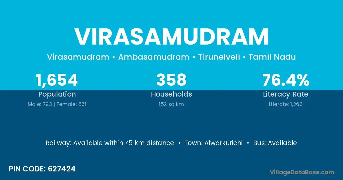 Alwarkurichi is the nearest town to Virasamudram village for major economic activities