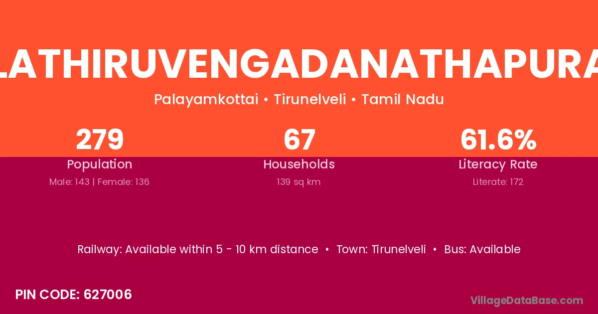 Kilathiruvengadanathapuram village has a total population of 279 people, of which 143 are males and 136 are females.
