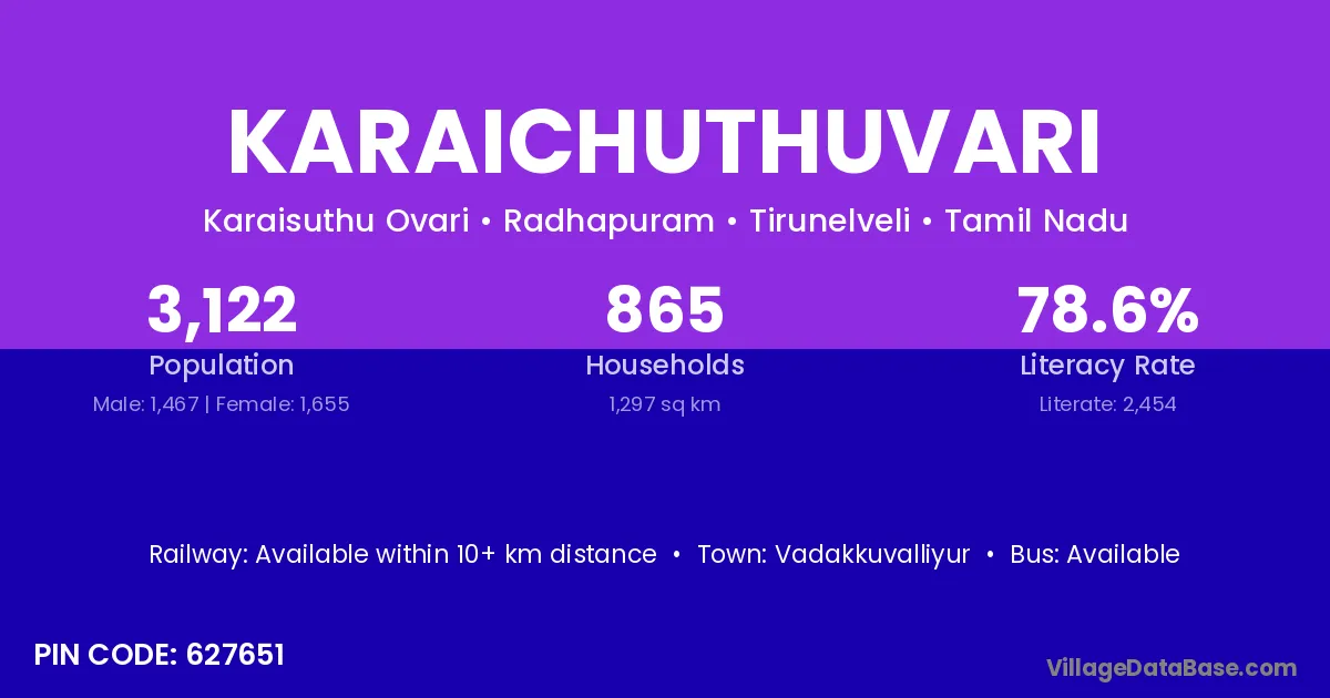 According to Census 2011 information, the village code of Karaichuthuvari village is 627651.
