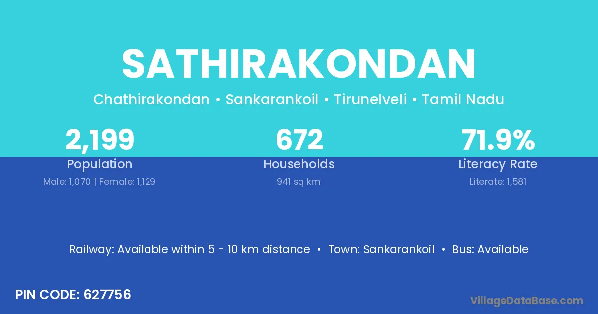 Sankarankoil is the nearest town to Sathirakondan village for major economic activities