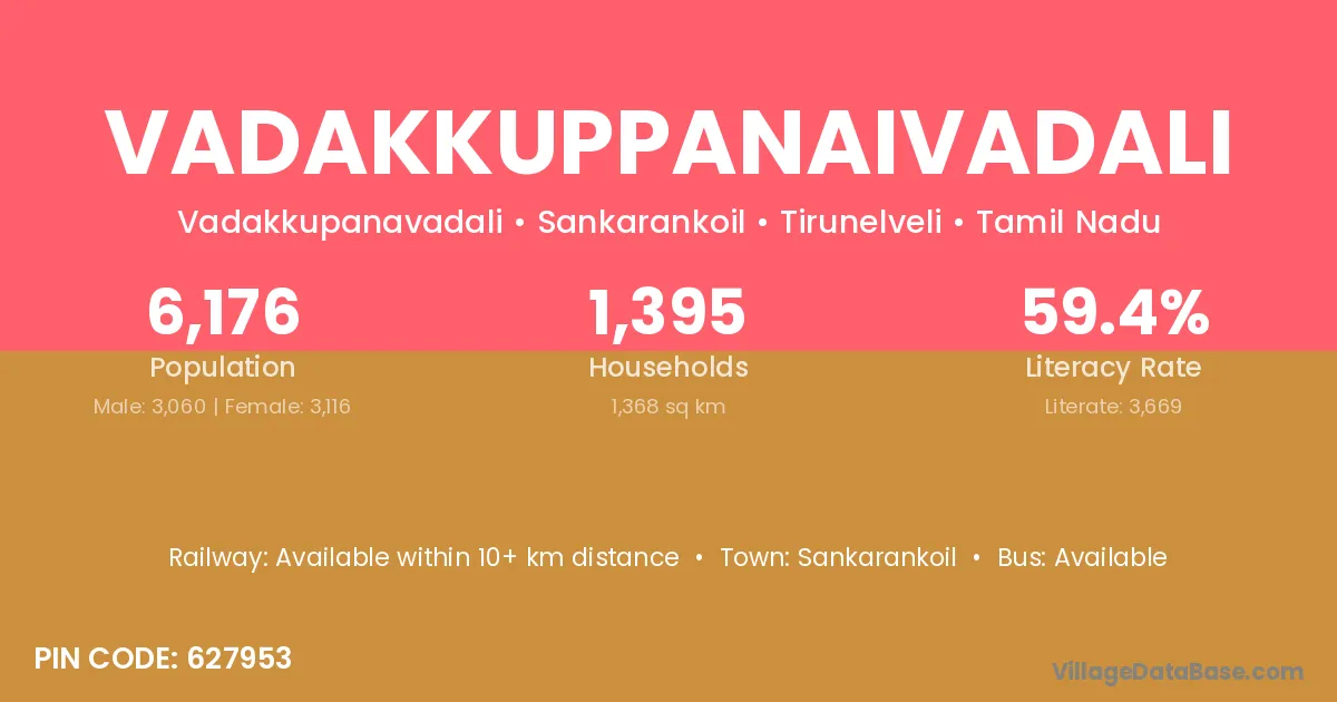 Vadakkuppanaivadali village has a total population of 6,176 people, of which 3,060 are males and 3,116 are females.