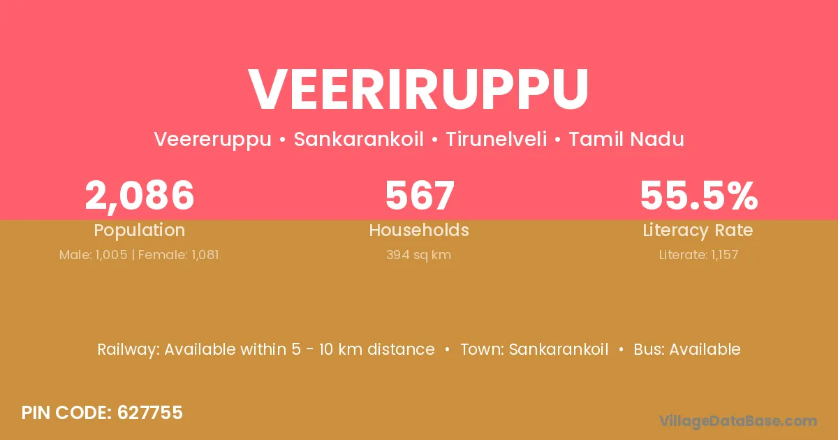 Sankarankoil is the nearest town to Veeriruppu village for major economic activities