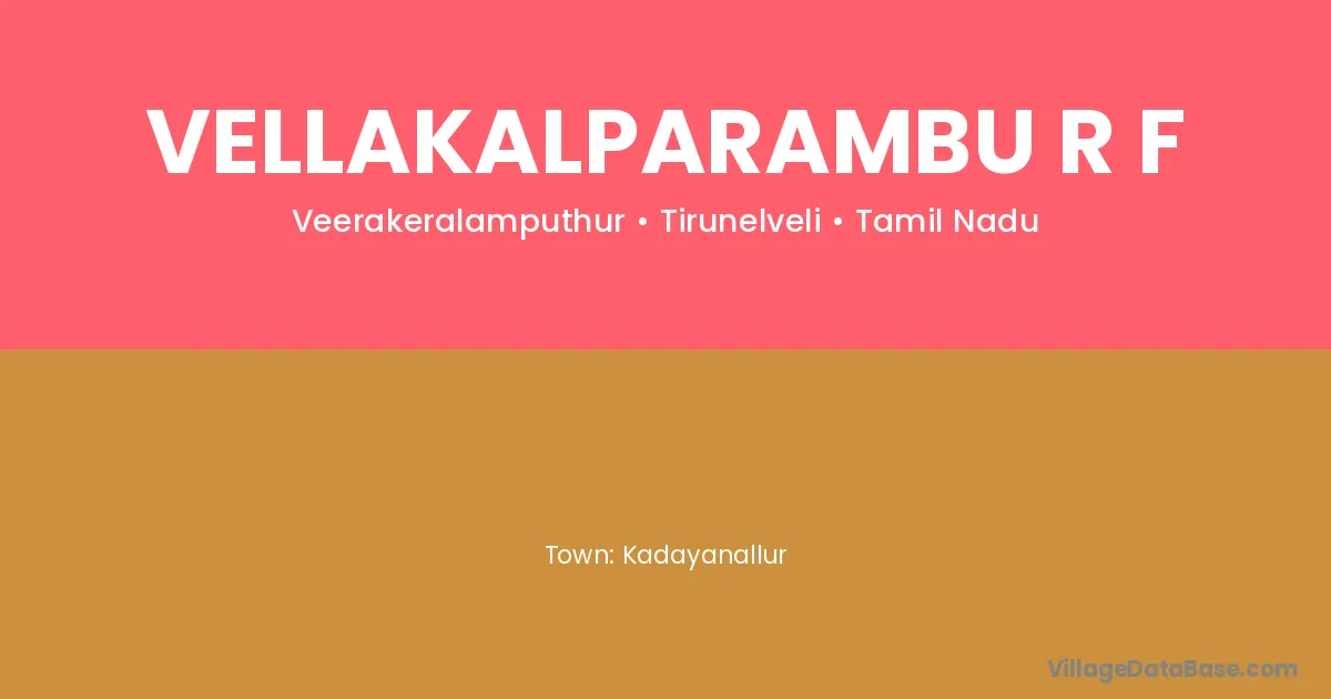 Kadayanallur is the nearest town to Vellakalparambu R F village for major economic activities