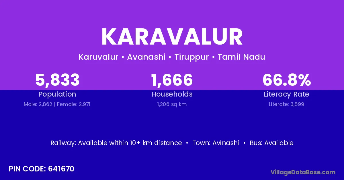According to Census 2011 information, the village code of Karavalur village is 641670.