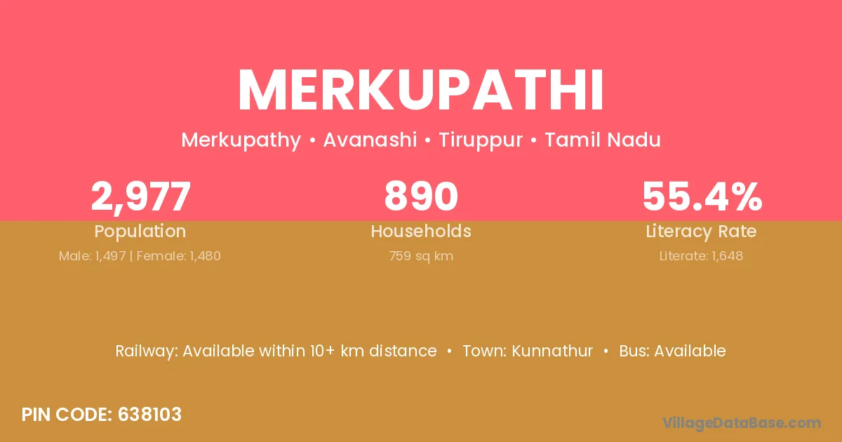 Merkupathi village has a total population of 2,977 people, of which 1,497 are males and 1,480 are females.