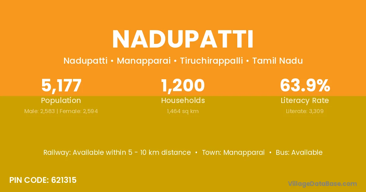 According to Census 2011 information, the village code of Nadupatti village is 638056.
