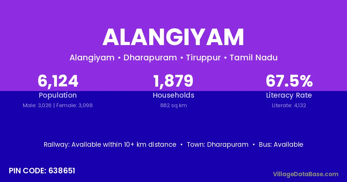 Dharapuram is the nearest town to Alangiyam village for major economic activities
