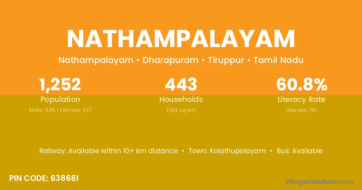 According to Census 2011 information, the village code of Nathampalayam village is 638661.