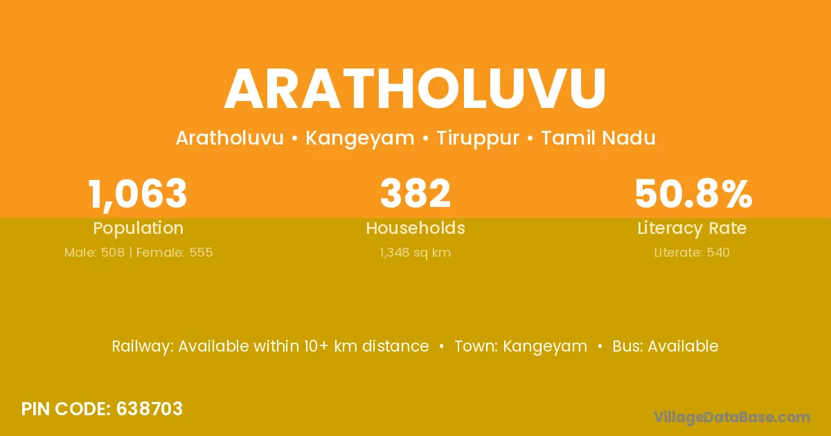Aratholuvu village has a total population of 1,063 people, of which 508 are males and 555 are females.