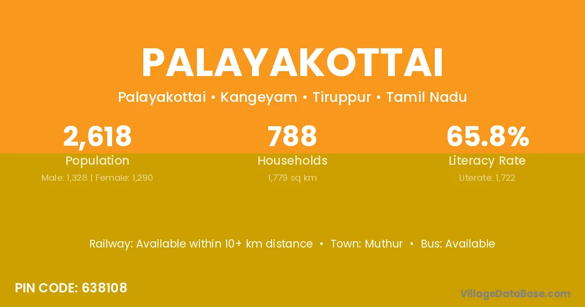 Palayakottai village has a total population of 2,618 people, of which 1,328 are males and 1,290 are females.