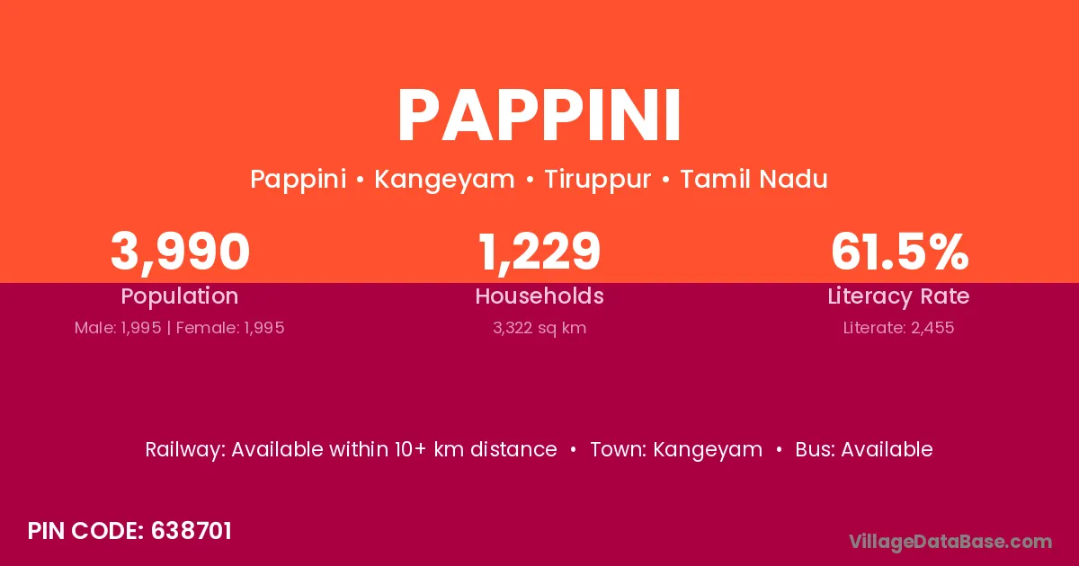 According to Census 2011 information, the village code of Pappini village is 638701.