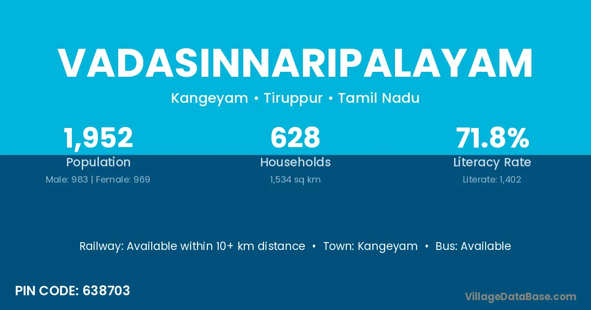 Vadasinnaripalayam village has a total population of 1,952 people, of which 983 are males and 969 are females.