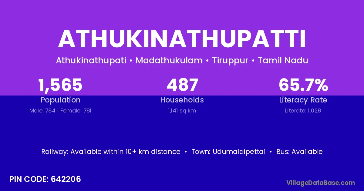 Athukinathupatti village has a total population of 1,565 people, of which 784 are males and 781 are females.